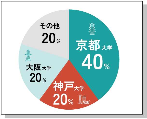 関西エリアに住んでいる方が圧倒的に多く、その他には「岡山大学」「九州大学」などの名前が。