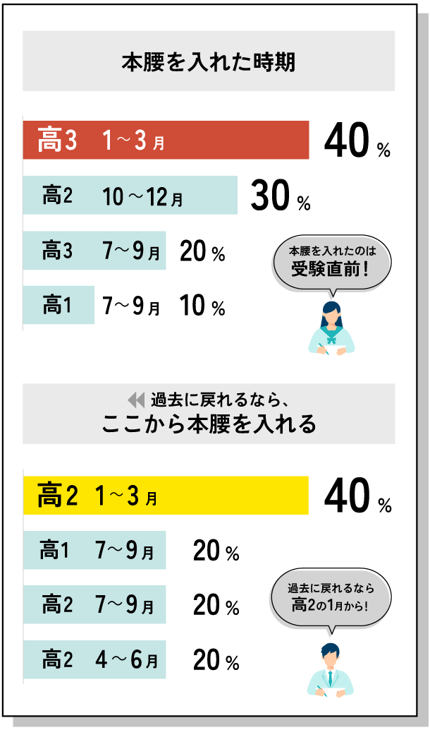 多くの先輩が「受験勉強をもっと早く始めれば良かった」と後悔していました。
